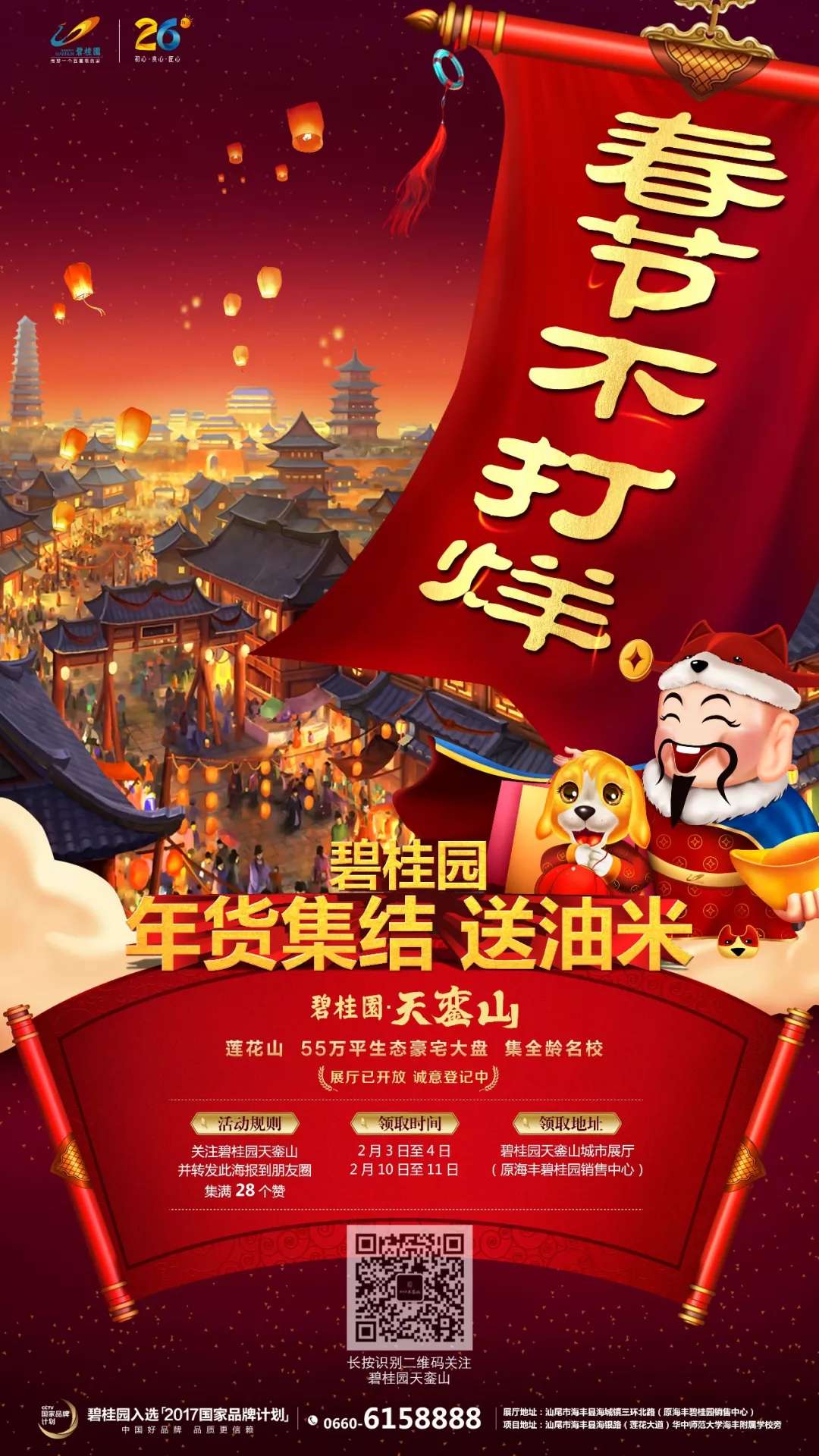 活动当天凭朋友圈转发记录,到海丰碧桂园销售中心