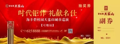 这么精彩的活动和表演,少了现场抽奖怎么行?拼人品?拼手气?来 ”碧桂园·天銮山城市巡演”现场,领取抽奖券就能参与我们的“现场抽大奖”!丰富超值的奖品等您来拿!